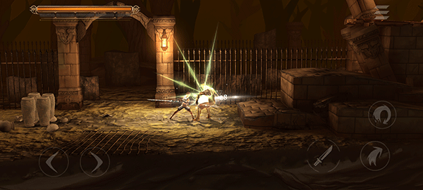 4、游戏操作类似横版闯关模式,左侧用于控制移动方向,右侧则负责攻击、跳跃和冲刺等动作;