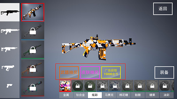 4、可通过武器抽奖、皮肤抽奖或观看广告,获取更多武器道具;