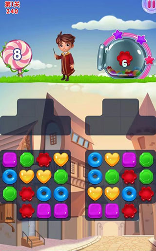 7、如果将5颗糖果排成一条直线,就会形成强大的魔法旋涡,使用任意颜色糖果触发后,可以收集场上所有相同颜色的糖果。