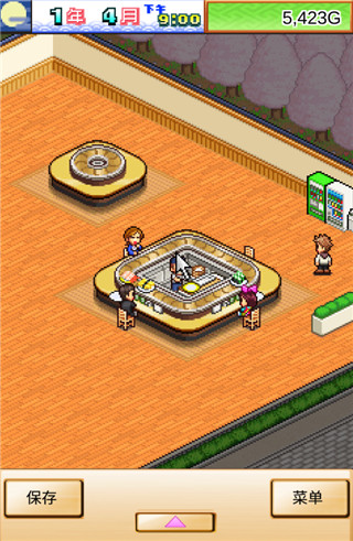 3、进入游戏后,玩家可以看到典型的开罗系列像素风画面,整体观感十分复古且新颖。需要注意的是,如果是首次游玩,初始阶段只会提供一些基础设施,不会像后期那样拥有丰富的摆设和布局。