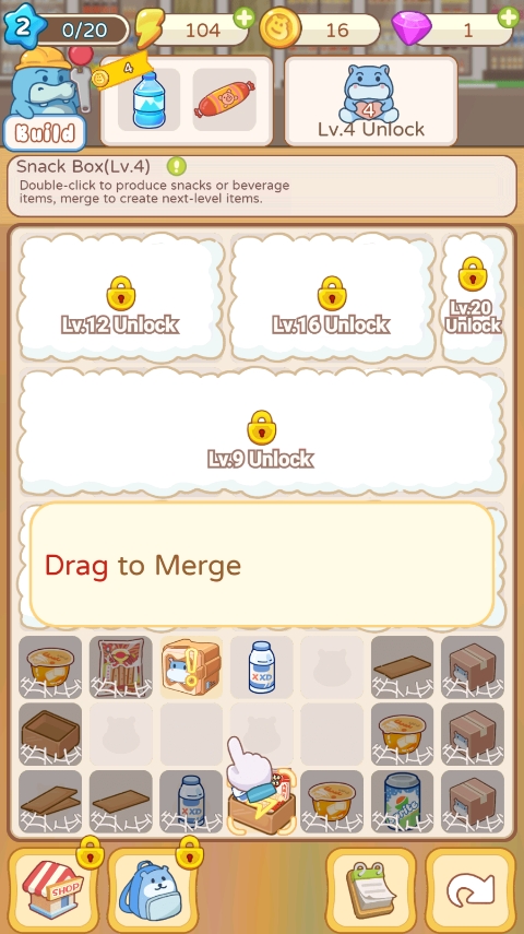 2、想要经营一家超市,首先需要通过合成玩法来逐步搭建基础设施,一步步完善超市的整体框架。