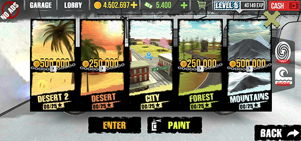 3、可以使用游戏过程中获得的金币和金钱来选择这些赛车,并且还可以用这些赛车来玩游戏。