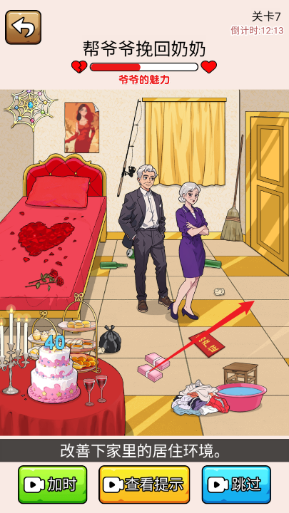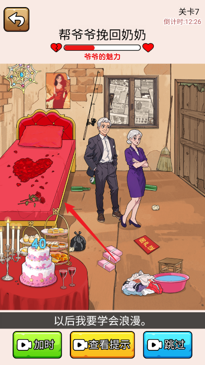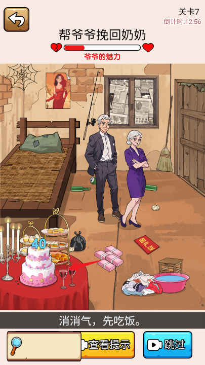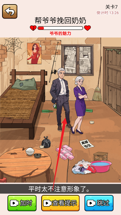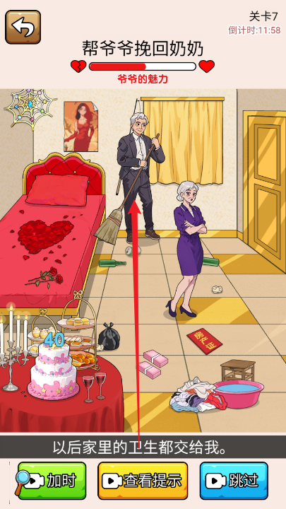 1、点击爷爷,让爷爷从椅子上站起来。