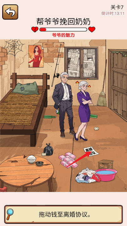 2、将钱拖动给爷爷,让他接住。