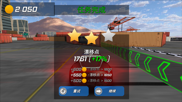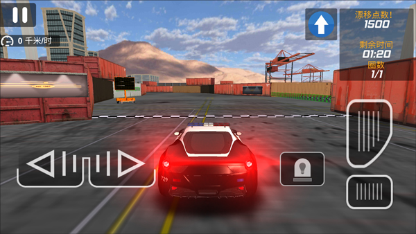 4、选定任务后,点击“出发”开始游戏,左下角用于控制车辆拐弯和漂移,右下角用于控制车辆前进或倒退。