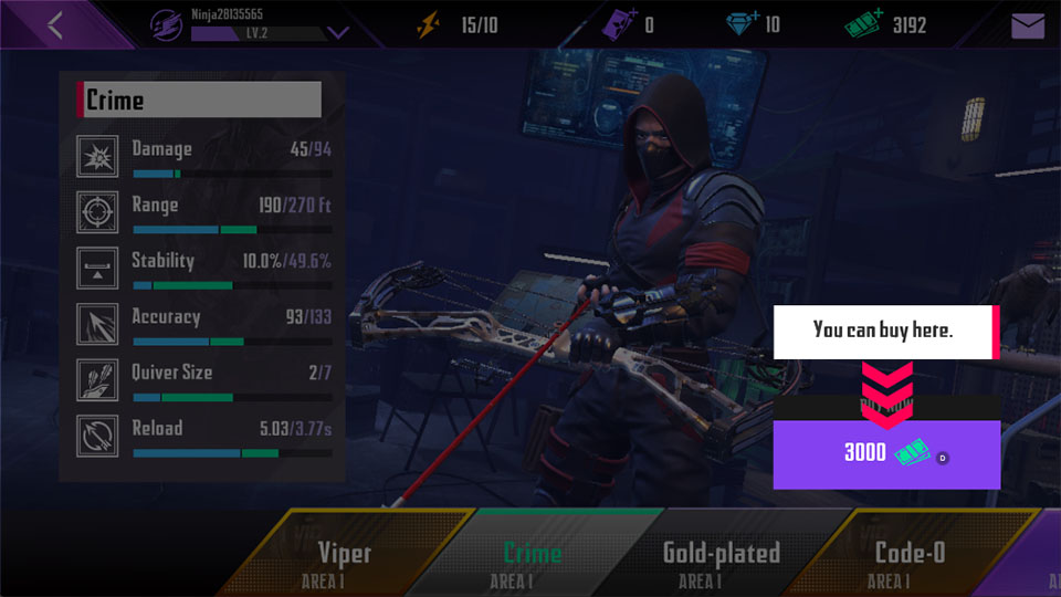 1、武器系统不仅包括传统的忍者工具,如弓箭、双管弩和投掷刀,还支持自定义箭的特效和飞行路径。