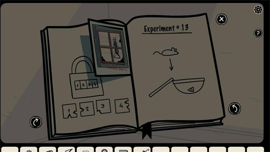 11、用钥匙开启柜子取得玻璃碗,根据笔记本提示制作捕鼠陷阱,放置后抓住老鼠获得钥匙。