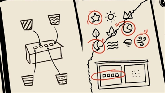 4、仔细观察花盆上的图案与叶片数量,按照对应顺序输入密码,打开盒子获得火柴。