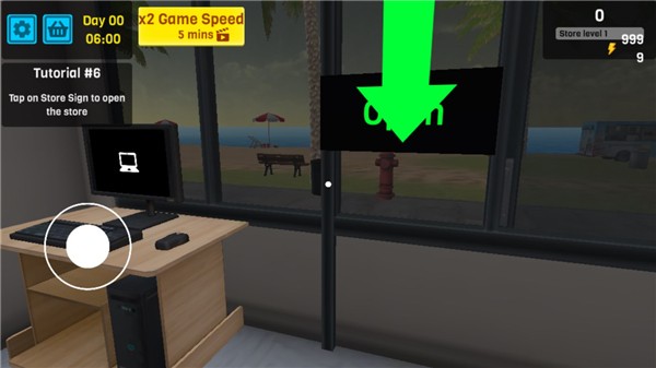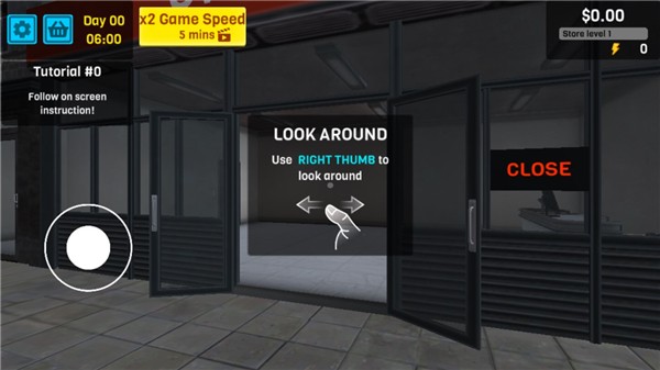 1、进入超市管理模拟器游戏后,移动右边的屏幕来改变视角。