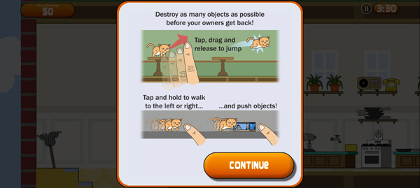 1、设立了许多级别,获得的金币可以增强猫的破坏力,砸东西可以赚更多的钱,让主人更快乐。