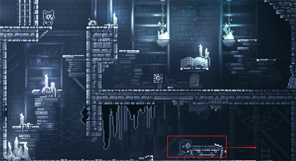 9、爬下梯子,回到之前的场景,使用射箭装置消除阻挡鹤嘴锄的黑色黏液获得。