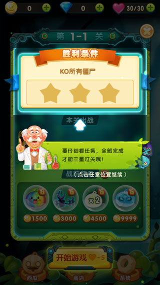 1、植物KO僵尸记得随时升级植物英雄,否则,你可以在使用之前的道具后完成关卡。