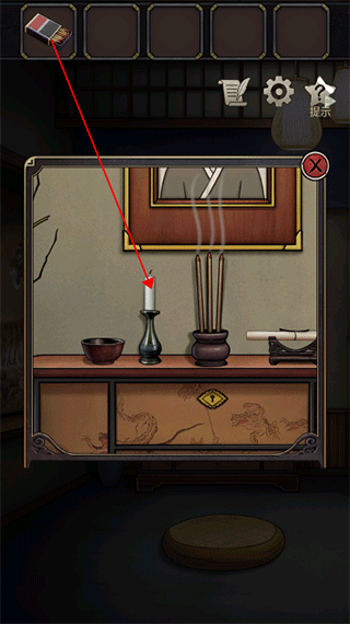 1、在浮生物语游戏开始时,按照提示点击平台,在平台上,可以找到用来点燃蜡烛的火柴。