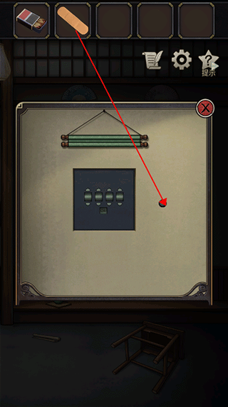 3、接下来,点击墙后面的壁画,按下旁边的按钮,然后用创可贴把按钮贴在旁边。