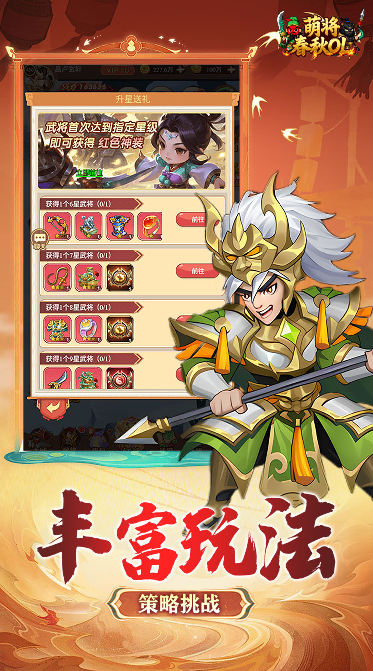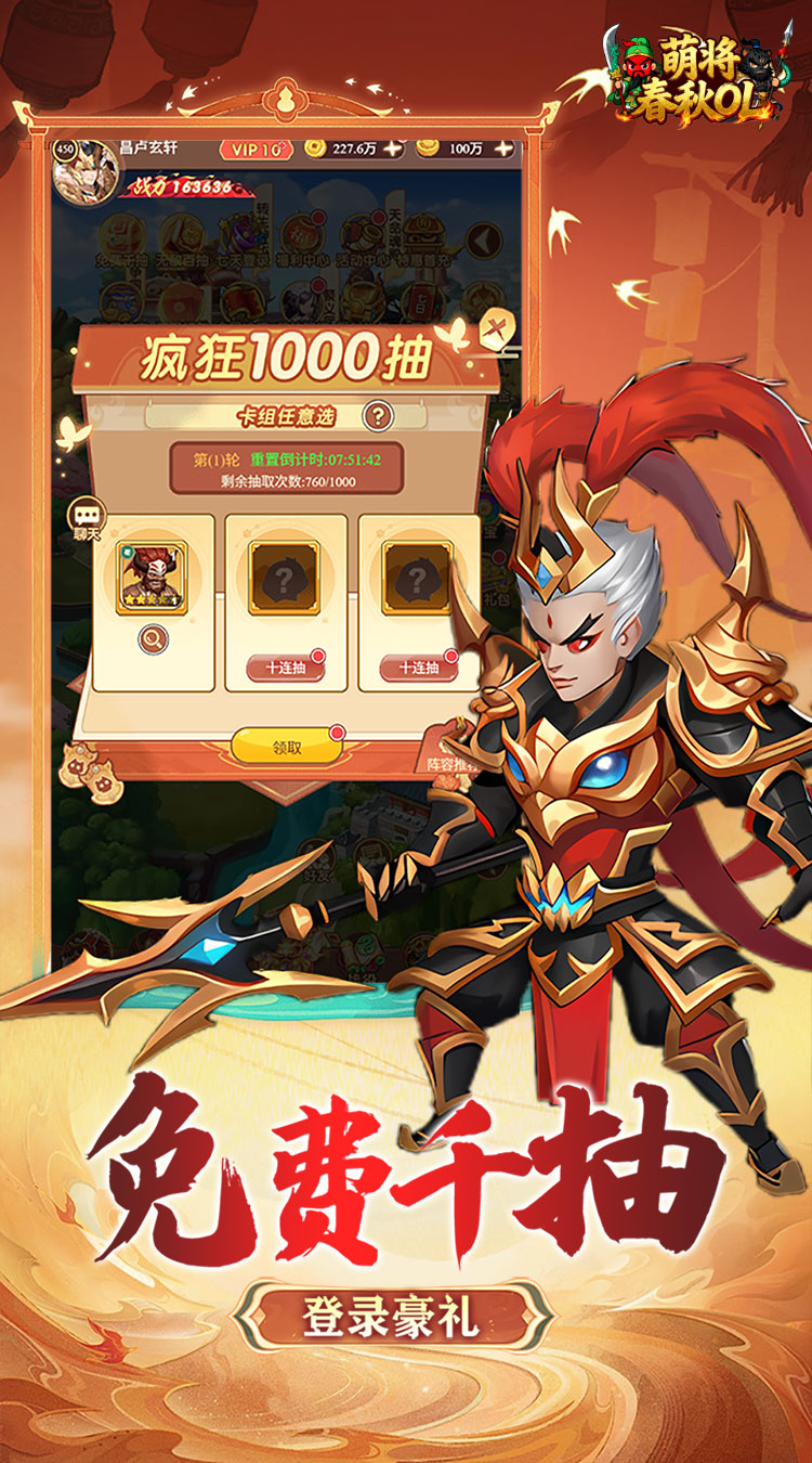 1、萌将春秋OL0.1折免费领648酷炫的技能可以通过战斗学习,每一场战斗都提供了全新的体验。