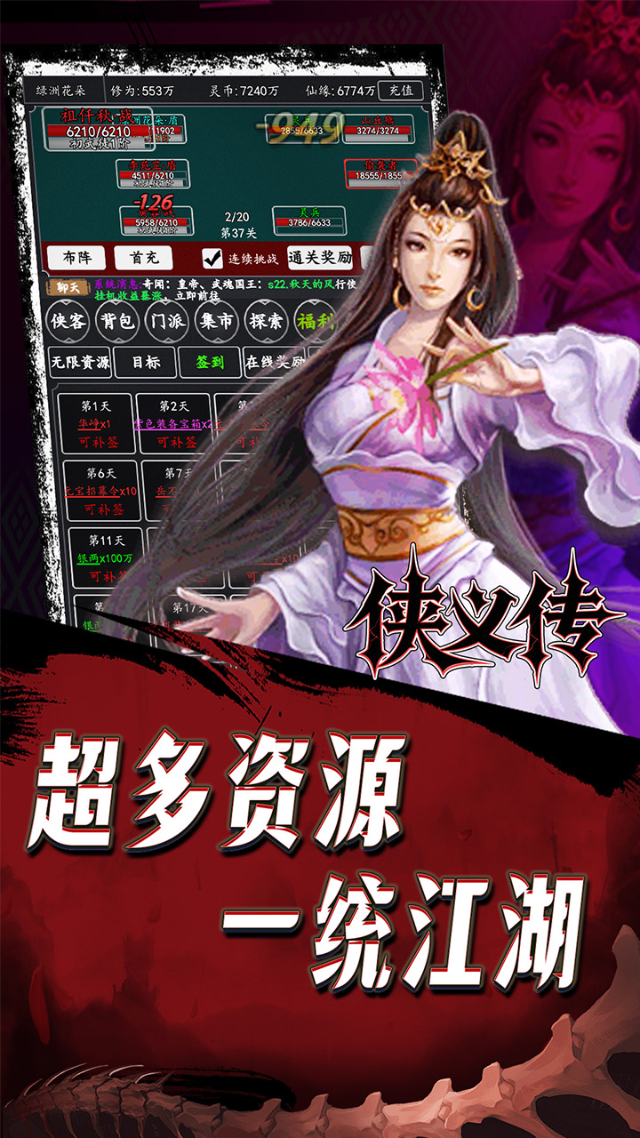 2、登陆即领取专属称号、元宝招募令*100、6666W元宝、6666W银两、500W修为和5000W至尊灵液、秘笈碎片*6666、圣物碎片*6666、红色稀有侠客任选*1、红色秘笈任选*1,开局资源直接拉满,轻松开启江湖征程!
