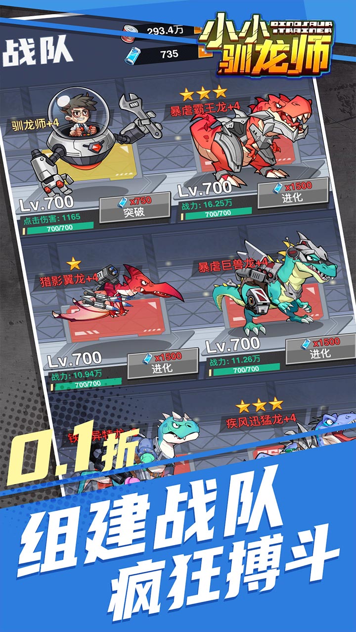 1、小小驯龙师开局养成霸王龙内置0.1折多样化的玩法,如关卡挑战、人才培养、boss战等,告别无聊。