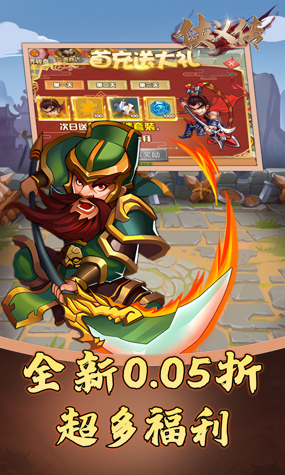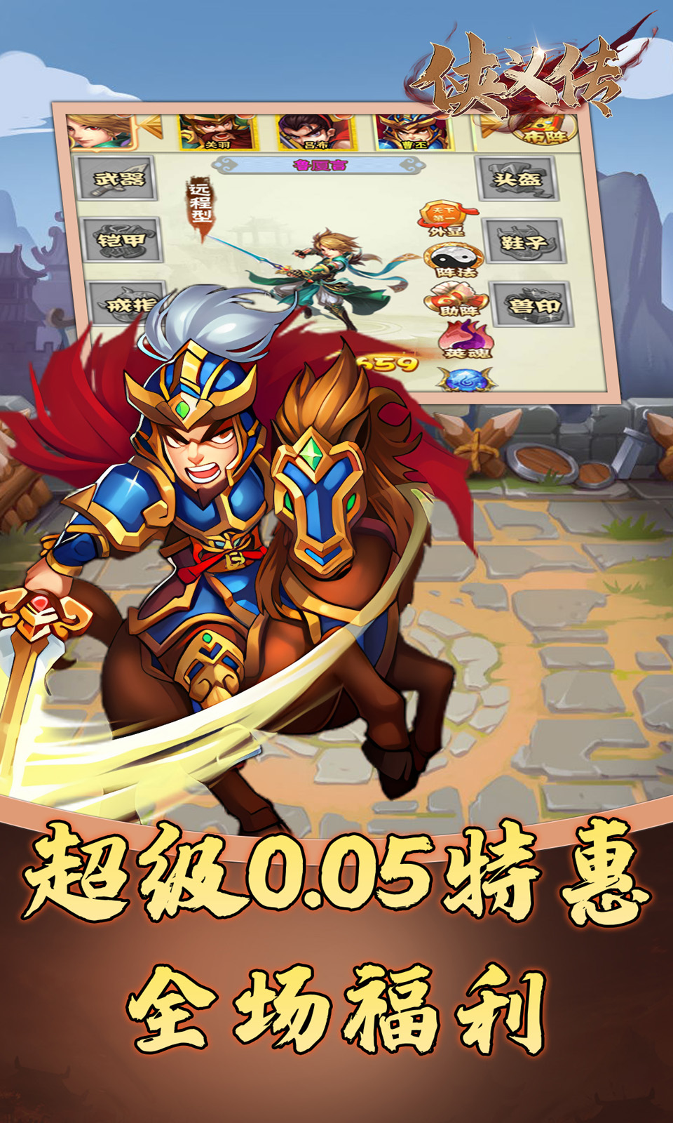 2、侠义传0.05折三国买断版各种强大的战斗挑战可供参与战斗,并可以获得大量的资源和物品。
