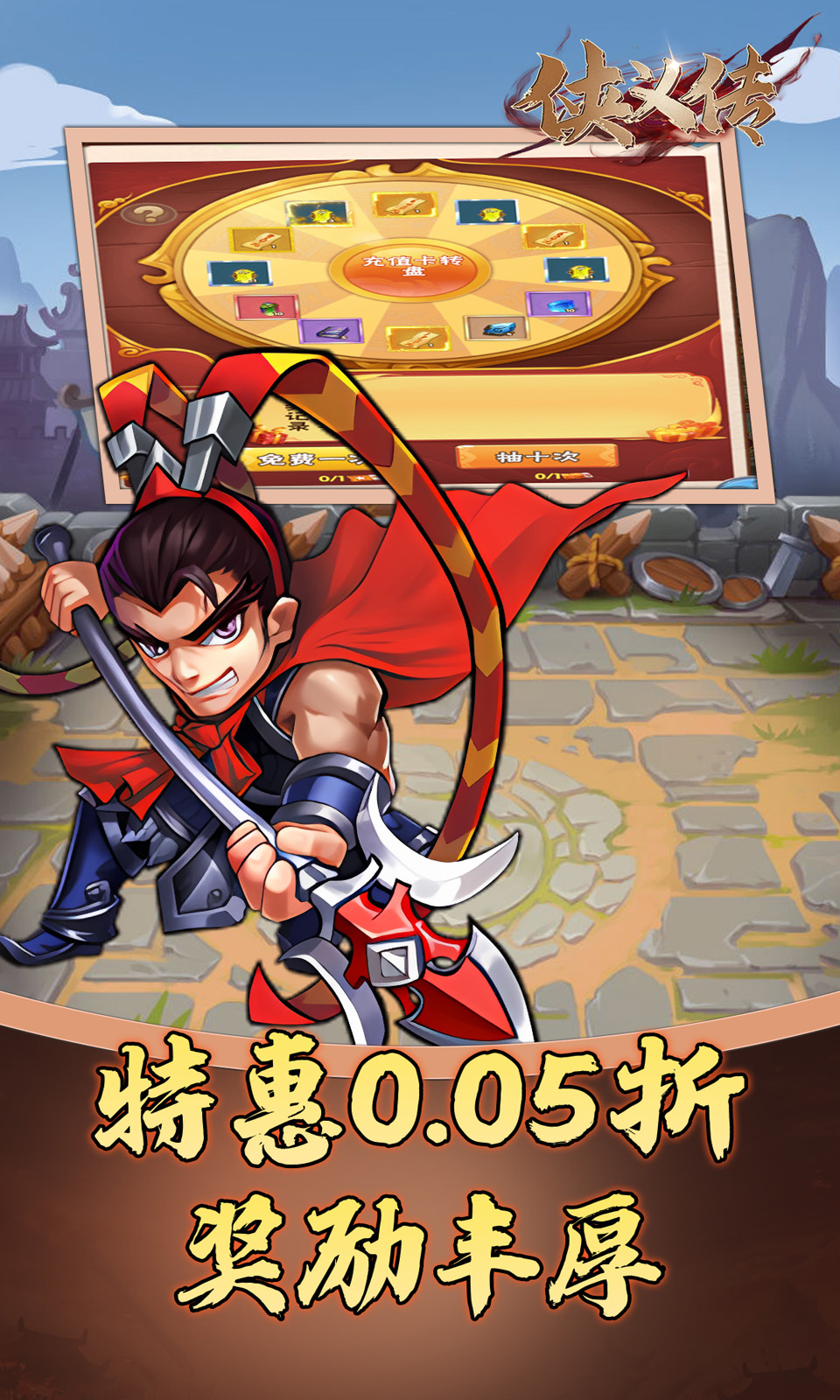 侠义传0.05折三国买断版游戏由三国时代为核心打造的全新手游,游戏画风细腻,内容被制作的很精彩,玩着很是愉快,在这个游戏里玩家将扮演领主,在危机四伏的时代开启新的故事,玩家开局就可以领取大量福利,登录即送橙色武将,vip16特权免费领,超多豪礼拿到手软,海量648代金券随便用,感兴趣的玩家欢迎在线游玩。