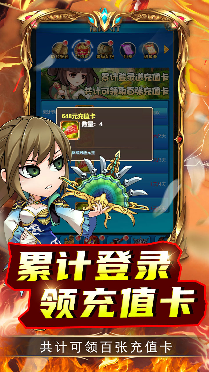 2、累计登录领取充值卡。