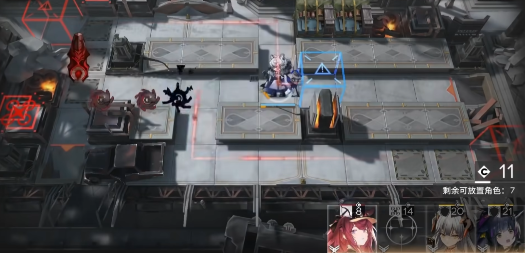 周旋的谋略(一技能):释放后立即获得部署费用,并降低距离“风雪之眼”最近干员的部署成本(优先右侧近卫、狙击、术师)。