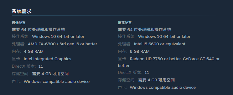显卡: Radeon HD 7730 or better, GeForce GT 640 or better