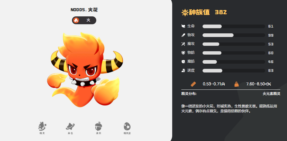 定位与特点:火花是火属性精灵中输出能力较强的角色,适合追求快速战斗节奏的玩家。