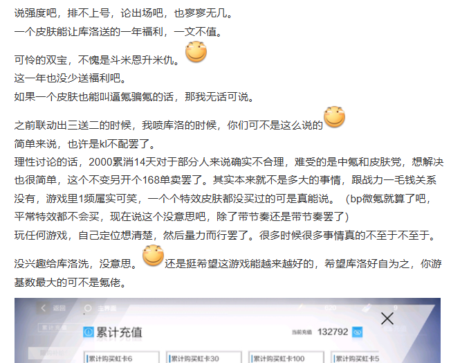 然而大部分的普通玩家,真正喜爱这个角色,在自己能力范围内,为了专武皮肤累充2000也很正常。