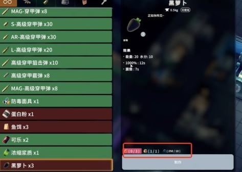 将蓝图带回基地后,制作黑萝卜需要三个胡萝卜、一瓶墨水和十点方块能量。
