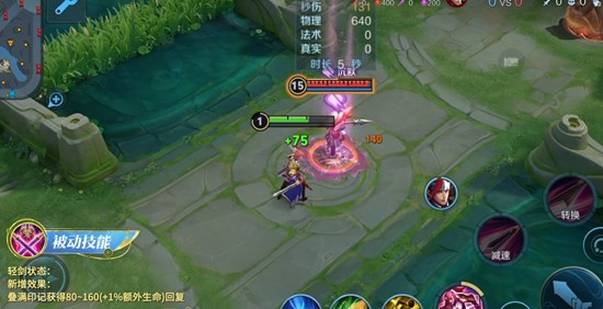 本次花木兰获得回血刀被动:印记叠满后可自动回复已损生命值。轻剑开局进场、重剑收割的连招容错提升,一套打完还能继续蹲草,对线期续航大幅提升。