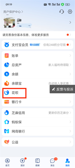 2、在“我的”页面中找到 【花呗】 并点击进入。