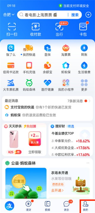 1、打开支付宝,进入首页后点击右下角 【我的】。