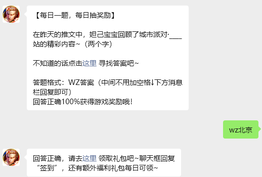今日问题:在昨天的推文中,妲己宝宝回顾了城市派对·____站的精彩内容~(两个字)