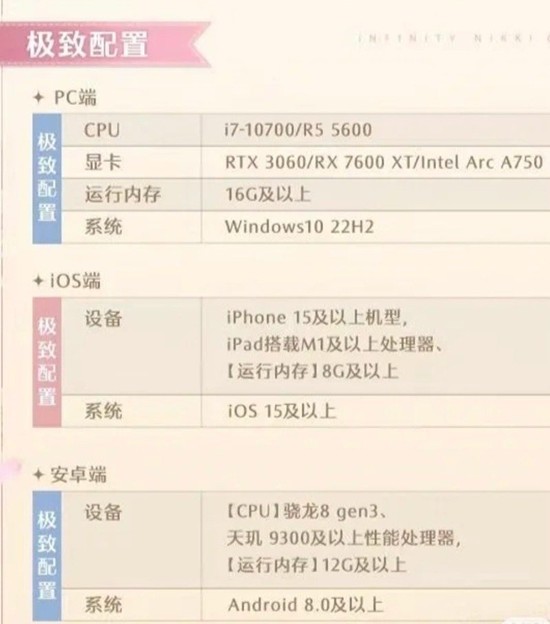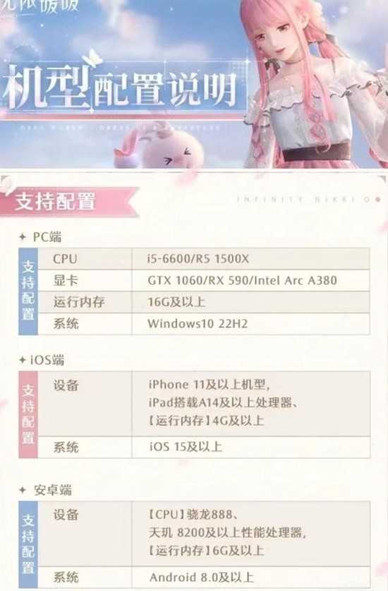 需要注意的是,《无限暖暖》占用存储空间较大,玩家应提前预留足够安装空间;运行内存方面,8GB 是最低要求,以确保游戏过程中不卡顿。