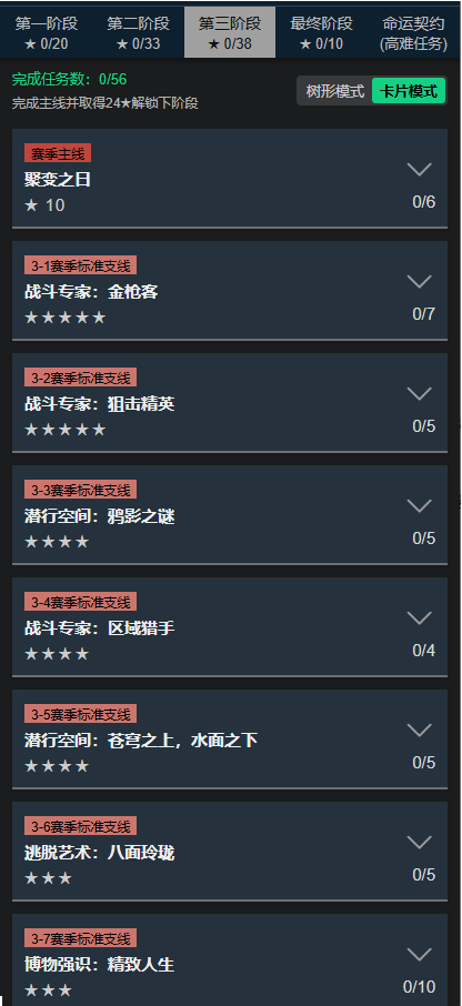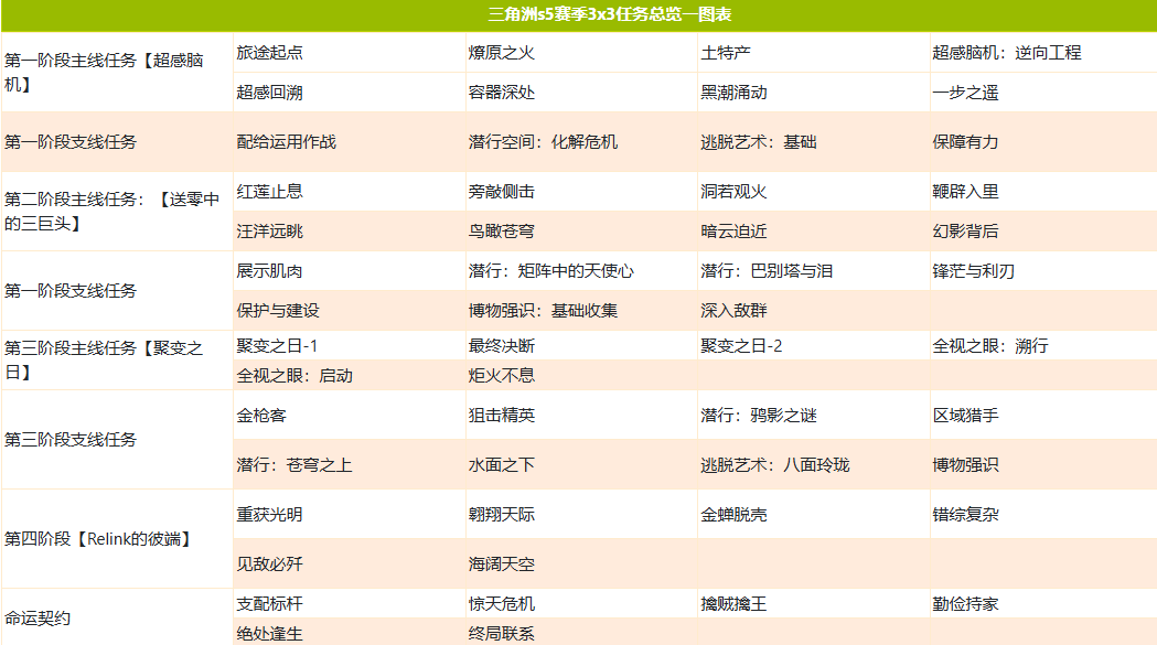 以下为三角洲S7赛季3x3任务的详细分类与阶段列表:
