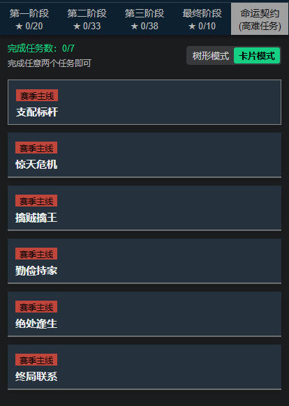 完成条件:需要同时完成行动计划任务、收集者任务六选二、命运契约七选二