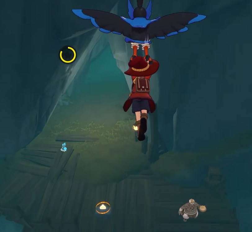 可发现木板结构及一名NPC。此时召唤 飞行坐骑 飞向NPC所在位置。