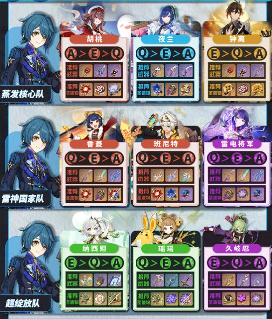 蒸发核心队:行秋 + 胡桃 + 夜兰 + 钟离