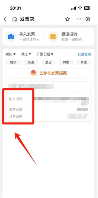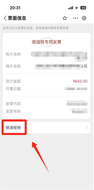 5、查看发票信息(报销金额、开票日期等),确认无误后点击【极速报销】,就完成啦!