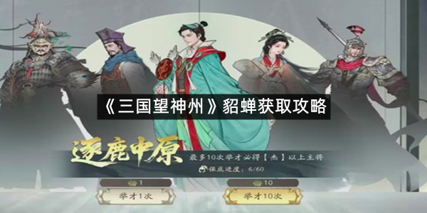 以上就是指玩手游网小编为你带来的《三国望神州》貂蝉获取攻略的全部内容,更多精彩游戏资讯攻略尽在指玩手游网,感兴趣的小伙伴欢迎点击关注收藏本网站哦。
