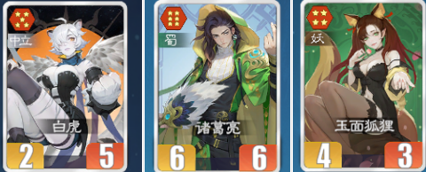 首回合上场一只白虎,并配合张良使用增益,使白虎基础属性从3提升至8-5。