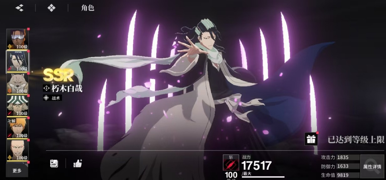 特点:爆发伤害高,卍解状态下普通攻击附带穿透剑气,清场快。