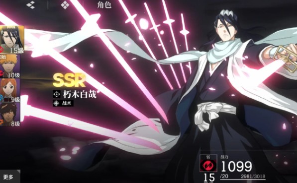 朽木露琪亚:SR级输出角色,寒气攻击附带控制,必杀技伤害高,普攻效率优秀。