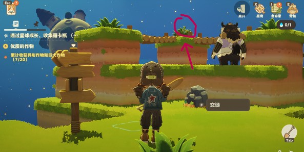 1、刚进入游戏时,背包为空,进度条会提示玩家多探索、多收集。打开备忘录后,会发现任务要求收集20个异型作物。这意味着除了捕捉昆虫,还需寻找一些特殊物品。