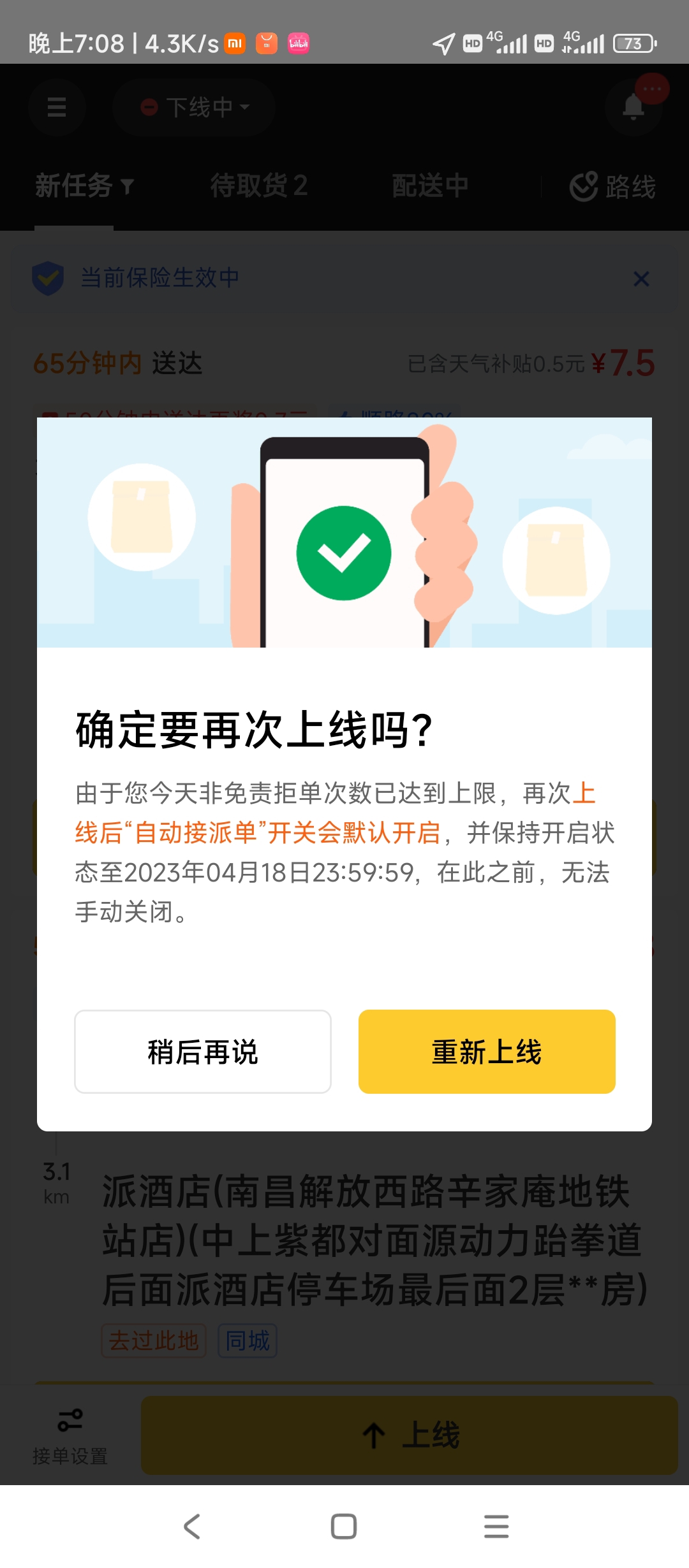 拒绝派送订单——系统会根据拒单情况将你移出畅跑模式(每日拒单有上限)。