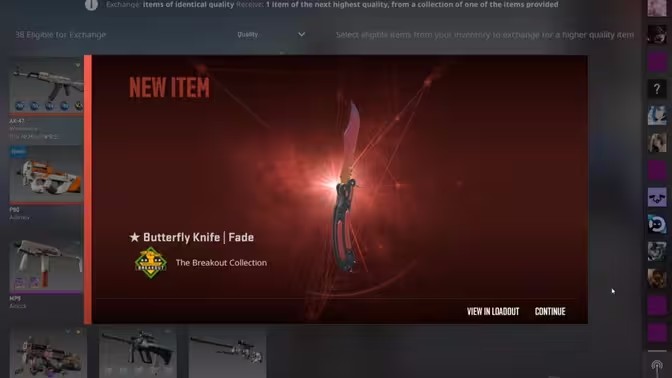通过新汰换系统,想要蝴蝶刀的玩家可以用梦魇箱子中的5件红色皮肤进行兑换。