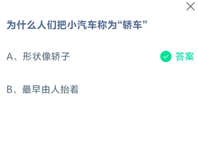 这一解释准确地指出了命名的原因——小汽车的造型与轿子相似,兼具乘坐的舒适性和封闭的结构。