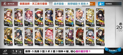 核心思路:以维什戴尔单核带1(优先专三)为主,装置推荐选择【天工夜行套装】。阵容建议为5先锋、3狙击、3术士、2奶盾、3特种(包含地刺干员如阿斯卡纶或伊桑)、4辅助,特种和术士干员可多带以完成保全任务。