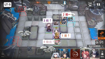 第五关:延续第四关阵容,维1、奶盾、地刺三人组基础上,高台补充输出,利用特种装置方便叠层。