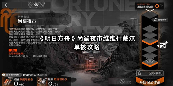 以上就是指玩手游网小编为你带来的《明日方舟》尚蜀夜市维维什戴尔单核攻略的全部内容,更多精彩游戏资讯攻略尽在指玩手游网,感兴趣的小伙伴欢迎点击关注收藏本网站哦。